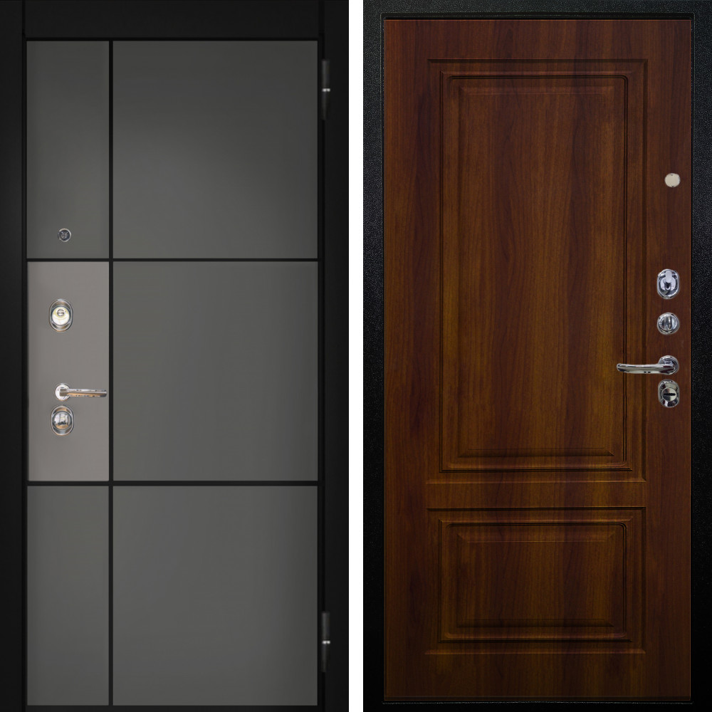 Входная дверь Termo-Door с утеплением: внешняя отделка Роял Графит, внутренняя отделка Лион Grey софт.Толщина полотна 100 мм., цилиндровый замок, доставка и установка в Москве и МО, гарантия 1 год.