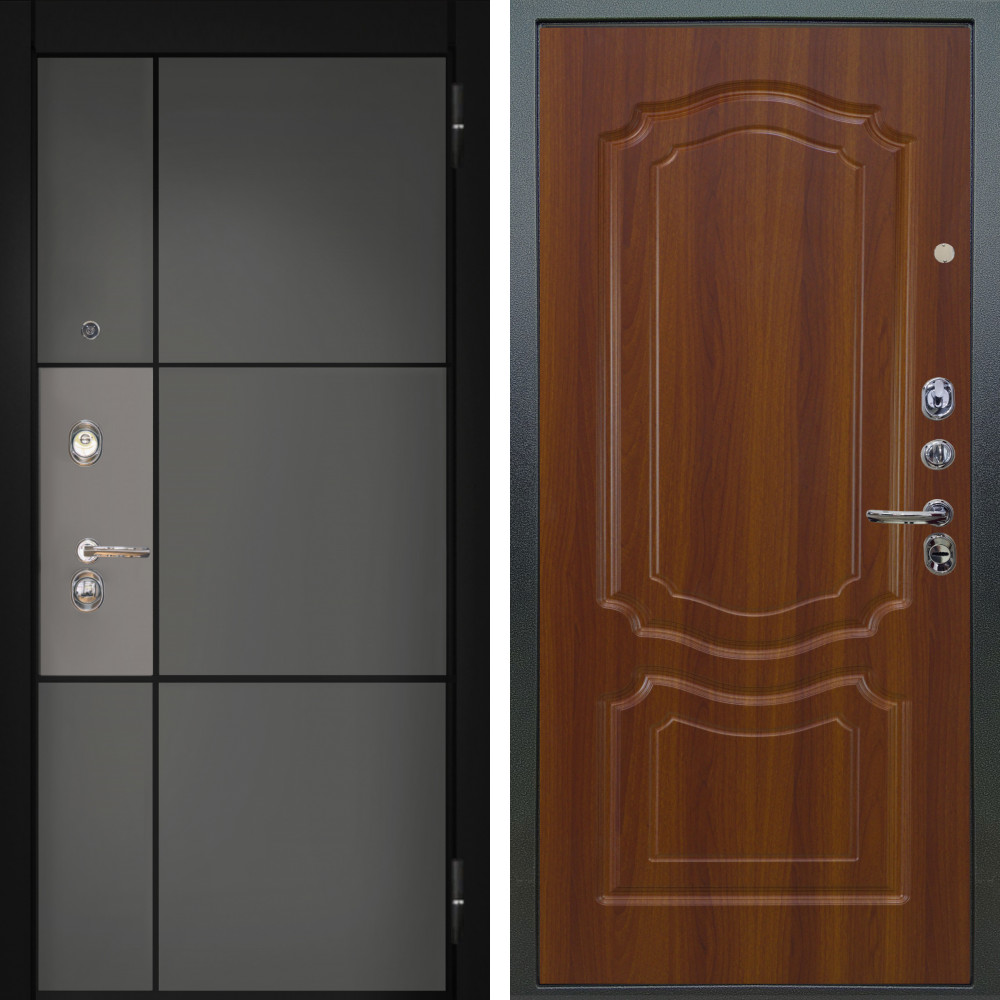 Входная дверь Termo-Door с утеплением: внешняя отделка Спейс Дуб Патина, внутренняя отделка Зеркало бетон темный.Толщина полотна 100 мм., цилиндровый замок, доставка и установка в Москве и МО, гарантия 1 год.