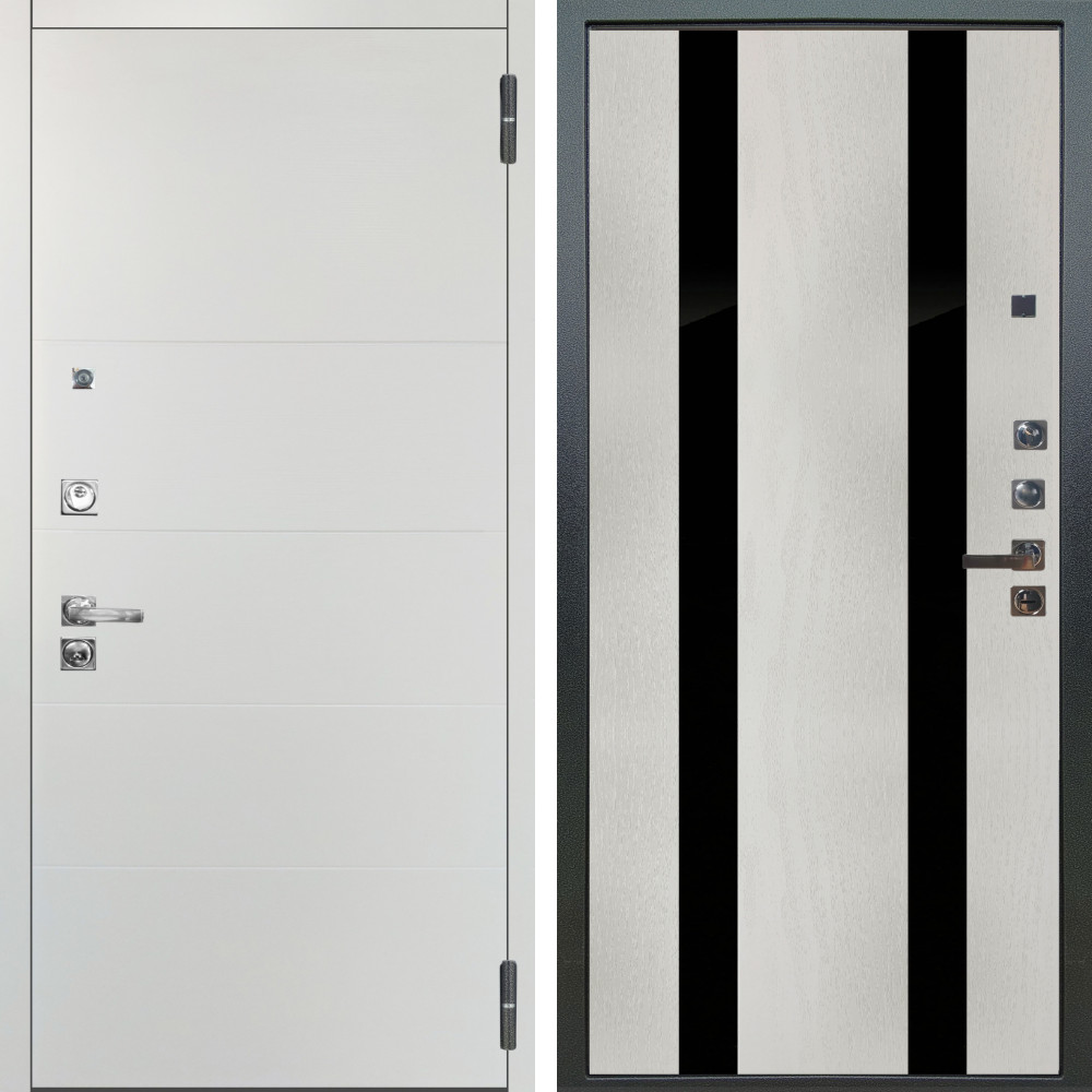 Входная дверь Аргус ЛЮКС 3К ПРО Агат Вельвет белый горизонт + Дуэт Белое дерево вставки Кензо