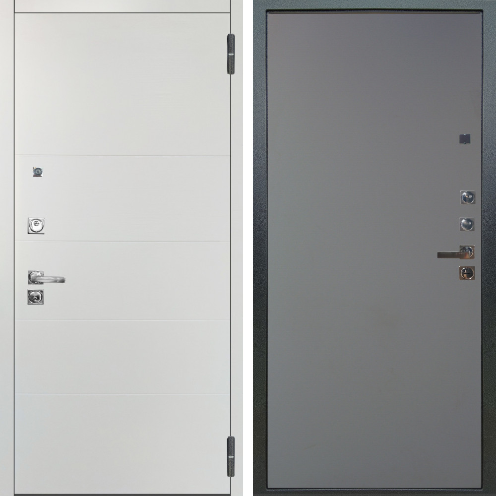 Входная дверь Шторм Графит SMART с внутренней отделкой ФЛ-119 силк маус • Габаритные размеры: 2050x860 мм, 2050x960 мм • Металл 1.8мм. Черная шагрень • Внешнее покрытие: МДФ 12 мм. • Толщина полотна: 115 мм. • Толщина коробки: 120 мм. • Короб закрытого типа, утепленный • Уплотнитель: 3 контура • Два вертикальных ребра жесткости • ЭЛЕКТРОННЫЙ ЗАМОК НА ВЫБОР • Замок дополнительный: Гардиан 6001 • Врезная броненакладка • Пазы на коробке под доборы • Независимая задвижка есть • Фурнитура ЧЕРНАЯ