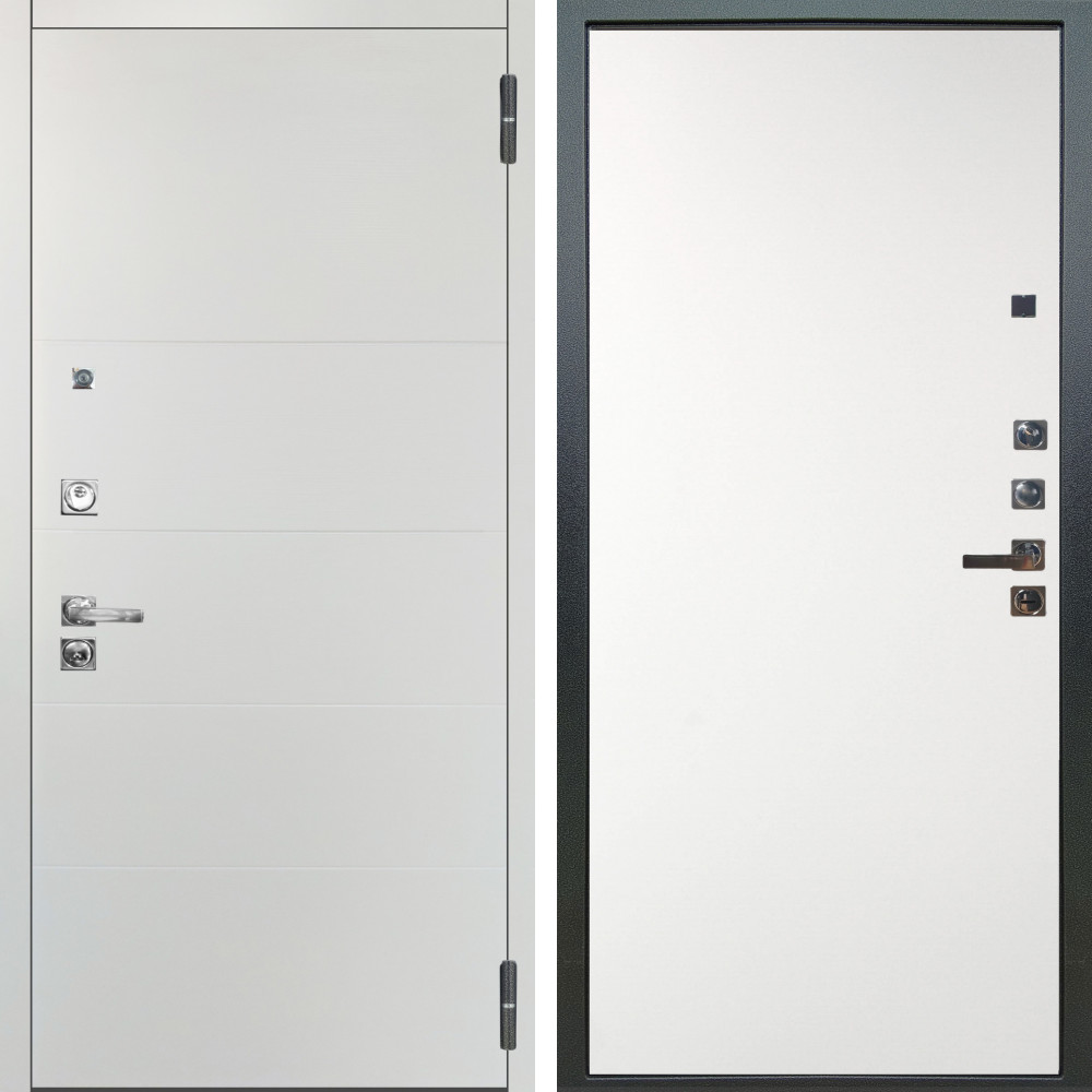 Полотно - два листа металла, Замковая зона усилена металлическим бронепакетом. Ответная часть замковой зоны усилена стальным швеллером,что сводит к минимуму попытки вскрытия двери методом отжима. Бронепластины на коробе в зоне входа ригелей замка. 2 специальных армированных прута внутри конструкции надёжно защитят дверь от вскрытия килечным ножом.