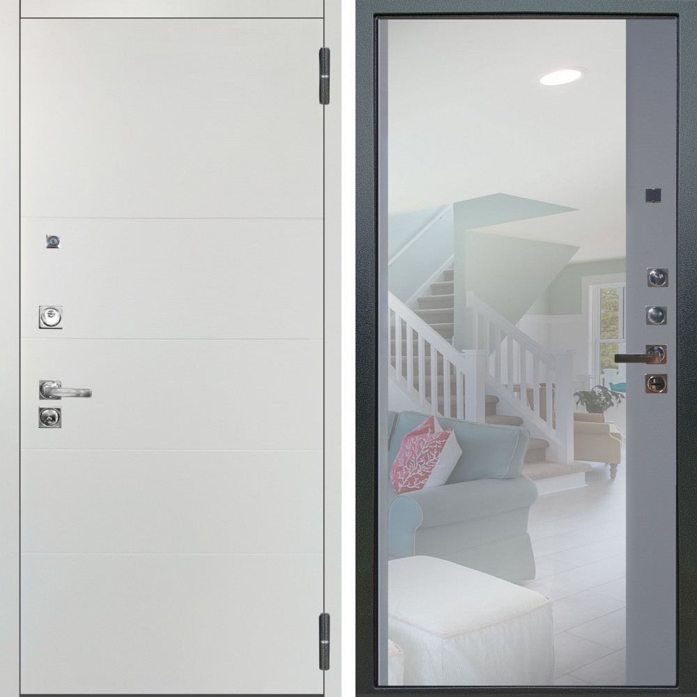 Входная дверь Termo-Door с утеплением: внешняя отделка Simple White, внутренняя отделка Зеркало Фацет Черный кварц.Толщина полотна 100 мм., цилиндровый замок, доставка и установка в Москве и МО, гарантия 1 год.