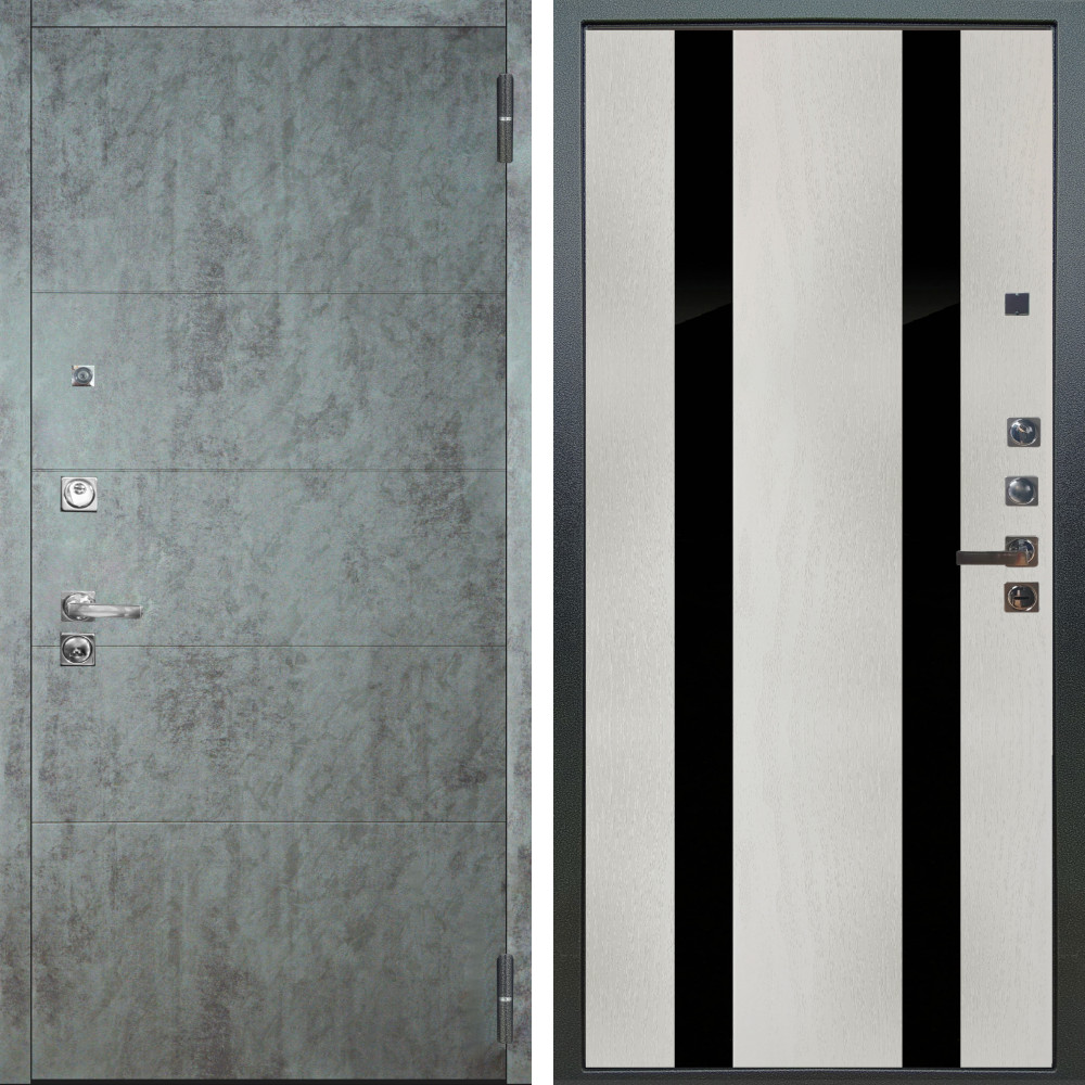 Входная дверь Аргус ЛЮКС 3К ПРО Агат Темный бетон + Дуэт Белое дерево вставки Кензо