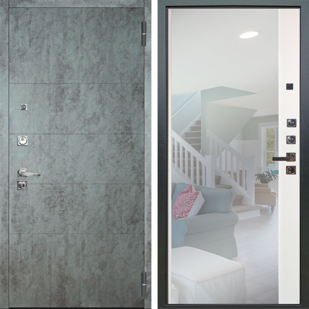 Входная дверь Termo-Door с утеплением: внешняя отделка Авангард Бетон, внутренняя отделка Зеркало Триумф бетон светлый.Толщина полотна 100 мм., цилиндровый замок, доставка и установка в Москве и МО, гарантия 1 год.