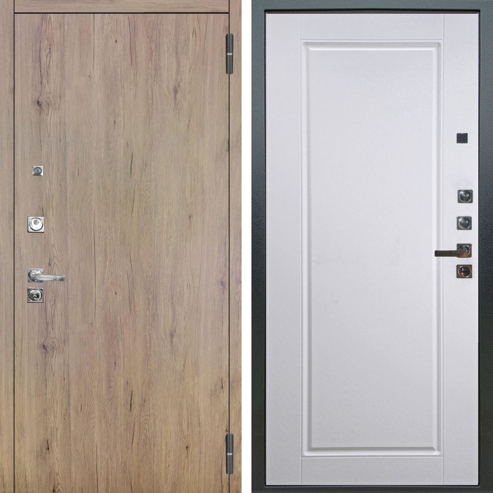 Входная дверь Termo-Door с утеплением: внешняя отделка Simple White, внутренняя отделка Спарта дуб.Толщина полотна 100 мм., цилиндровый замок, доставка и установка в Москве и МО, гарантия 1 год.