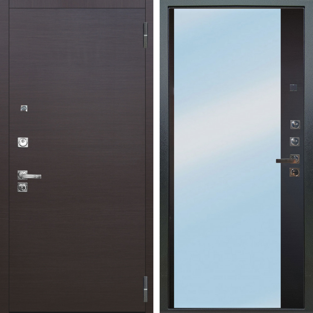 Входная дверь Вертика с внутренней отделкой Зеркало сб-16 черный кварц • Габаритные размеры: 2050x860 мм, 2050x960 мм • Металл 1.8мм • Внешнее покрытие: МДФ 16 мм белый мат с молдингом черная лакобель • Толщина полотна: 115 мм. • Толщина коробки: 120 мм. • Короб закрытого типа, утепленный • Уплотнитель: 3 контура • Два вертикальных ребра жесткости • Замок основной: Гардиан 6211 с блокировкой язычка • Замок дополнительный: Гардиан 6001 • Врезная броненакладка • Пазы на коробке под доборы • Независимая задвижка есть • Фурнитура Черная
