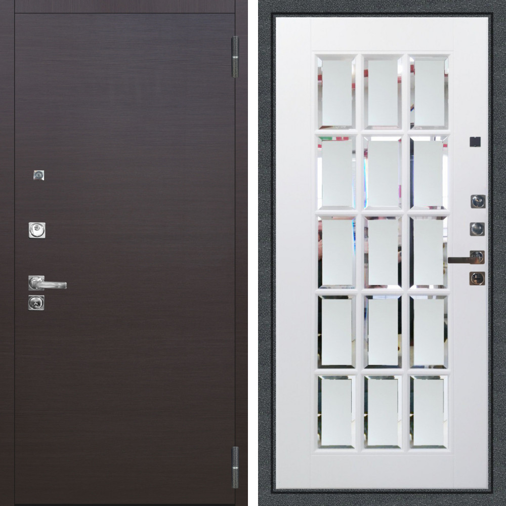Входная дверь Аргус ЛЮКС 3К ПРО Элегант Венге горизонт + Мэрелин Софт милк с фацетом и пескоструем