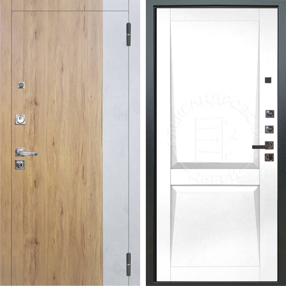 Входная дверь Аргус ЛЮКС 3К ПРО Эксперт Рустик соломенный вставка Бетон урбан милк + Ариана Белая эмаль