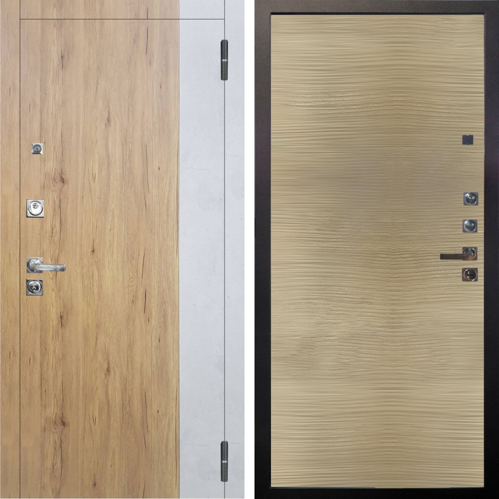 Входная дверь Аргус ЛЮКС 3К ПРО Эксперт Рустик соломенный вставка Бетон урбан милк + Элегант Дорс светлый горизонт