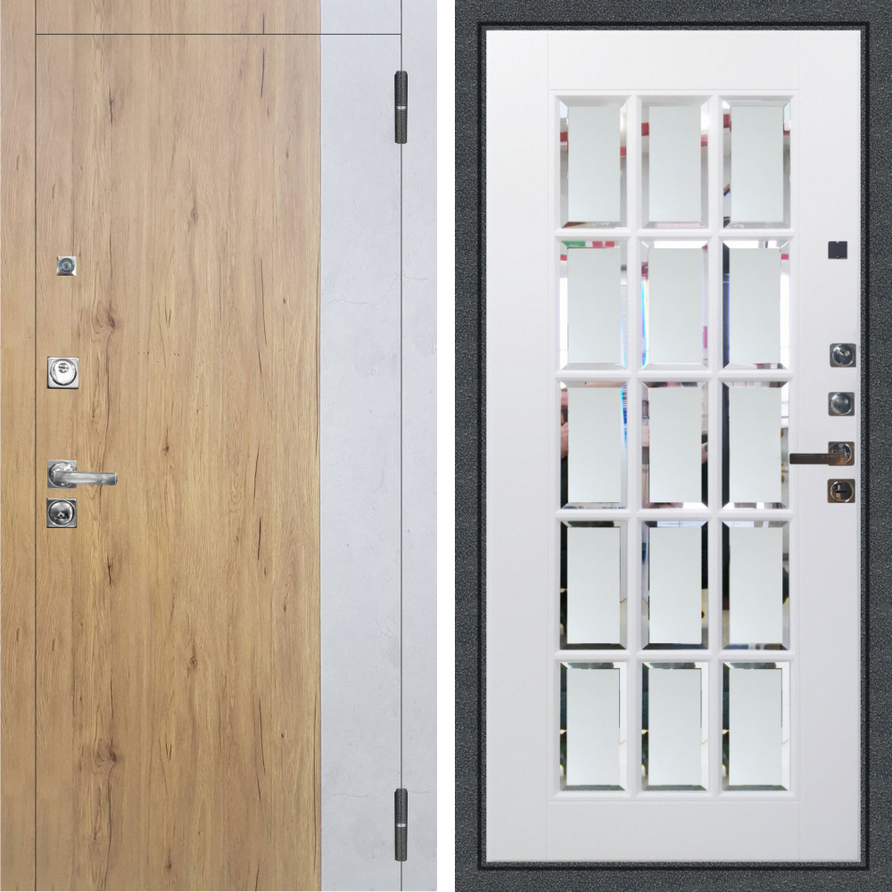 Входная дверь Аргус ЛЮКС 3К ПРО Эксперт Рустик соломенный вставка Бетон урбан милк + Мэрелин Софт милк с фацетом и пескоструем