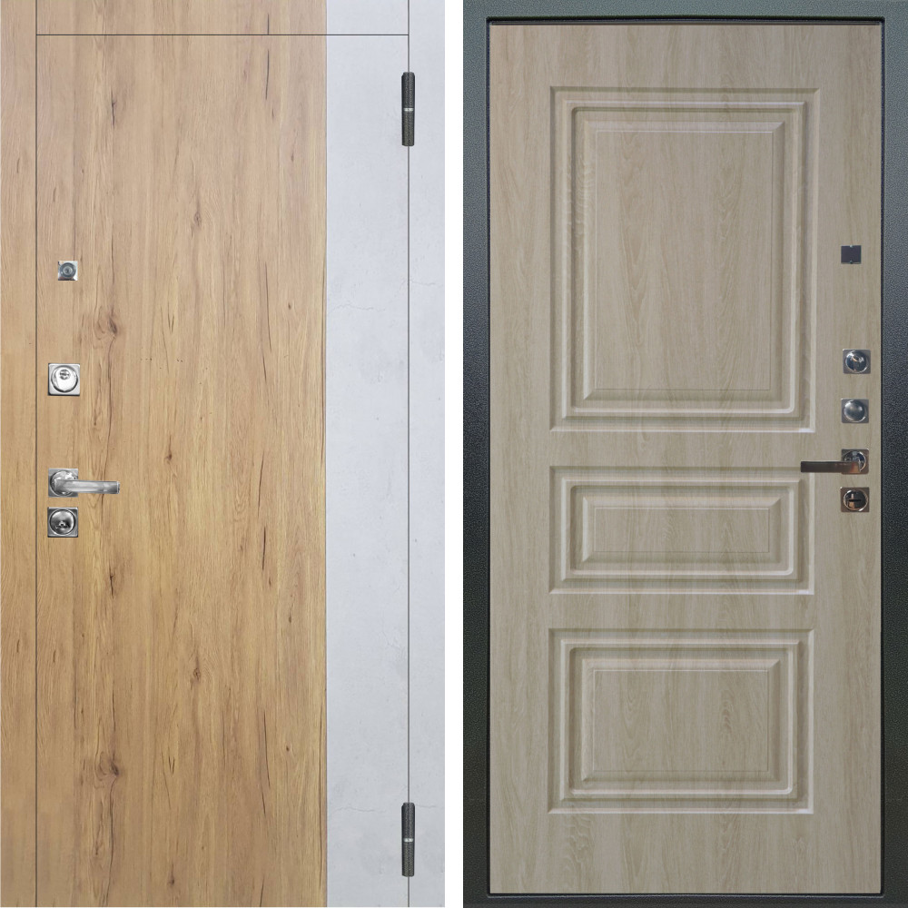 Входная дверь Аргус ЛЮКС 3К ПРО Эксперт Рустик соломенный вставка Бетон урбан милк + Скиф Дуб филадельфия крем