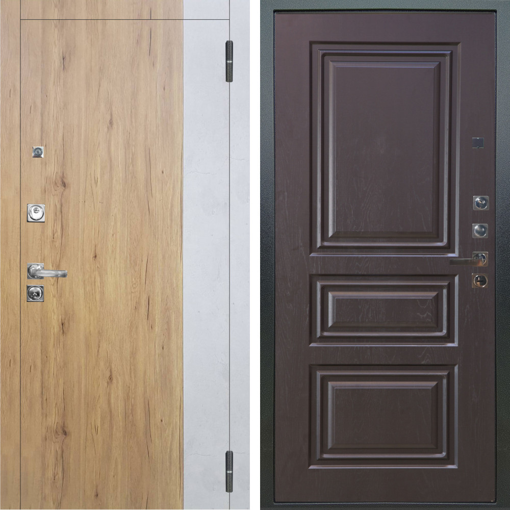 Входная дверь Аргус ЛЮКС 3К ПРО Эксперт Рустик соломенный вставка Бетон урбан милк + Скиф Горький шоколад