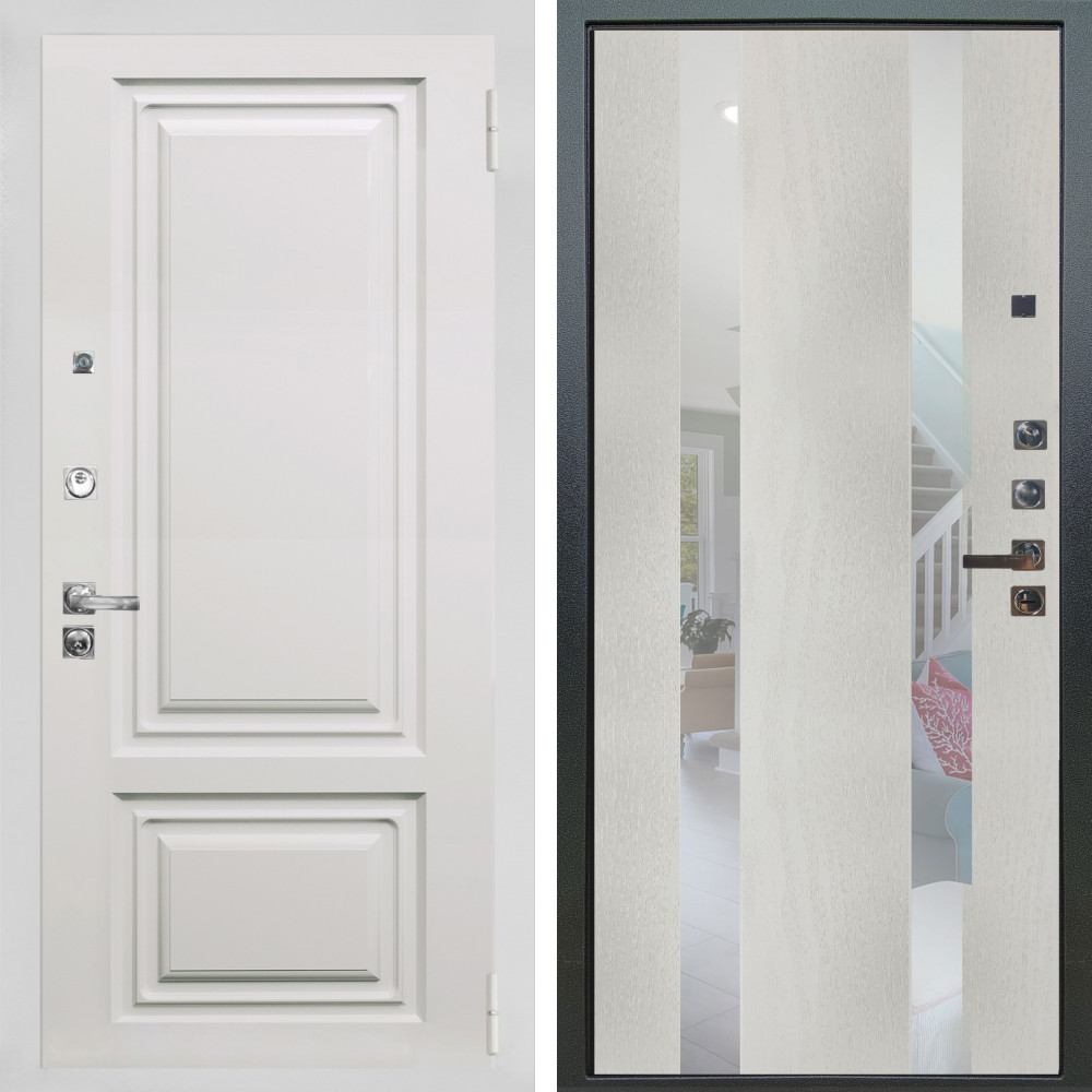 Входная дверь Аргус ЛЮКС 3К ПРО Элион мвр белый + Дуэт Белое дерево вставки Николь