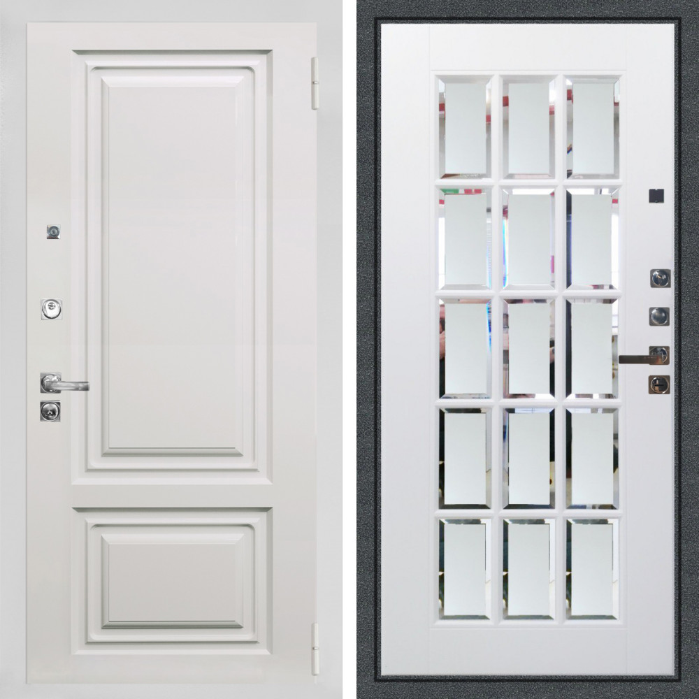 Входная дверь Termo-Door с утеплением: внешняя отделка Simple White, внутренняя отделка Зеркало Слоновая кость.Толщина полотна 100 мм., цилиндровый замок, доставка и установка в Москве и МО, гарантия 1 год.