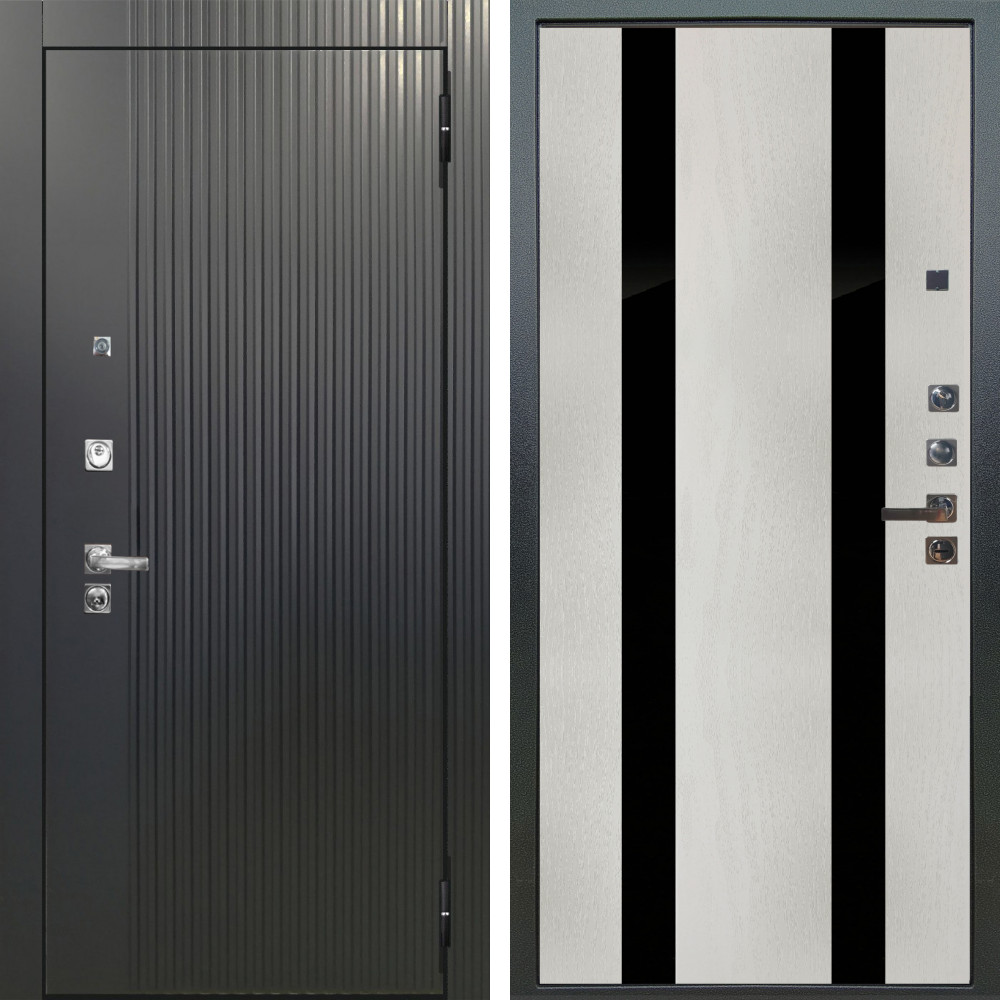 Входная дверь Аргус ЛЮКС 3К ПРО Фрейда Черный кварц + Дуэт Белое дерево вставки Кензо