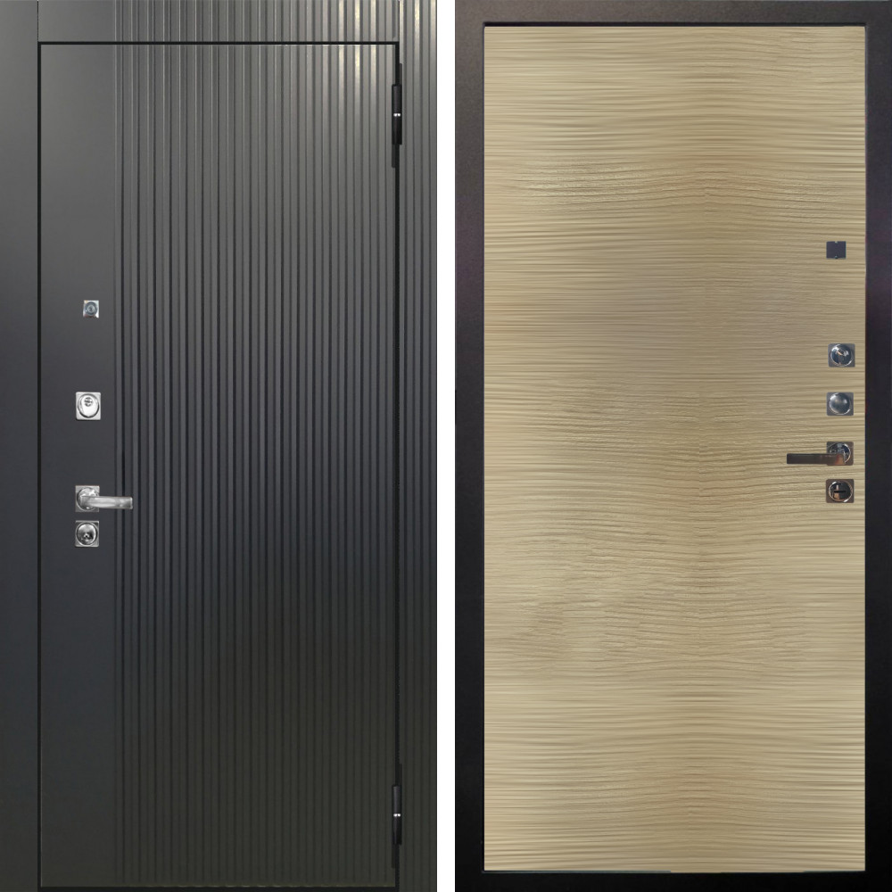 Входная дверь Аргус ЛЮКС 3К ПРО Фрейда Черный кварц + Элегант Дорс светлый горизонт