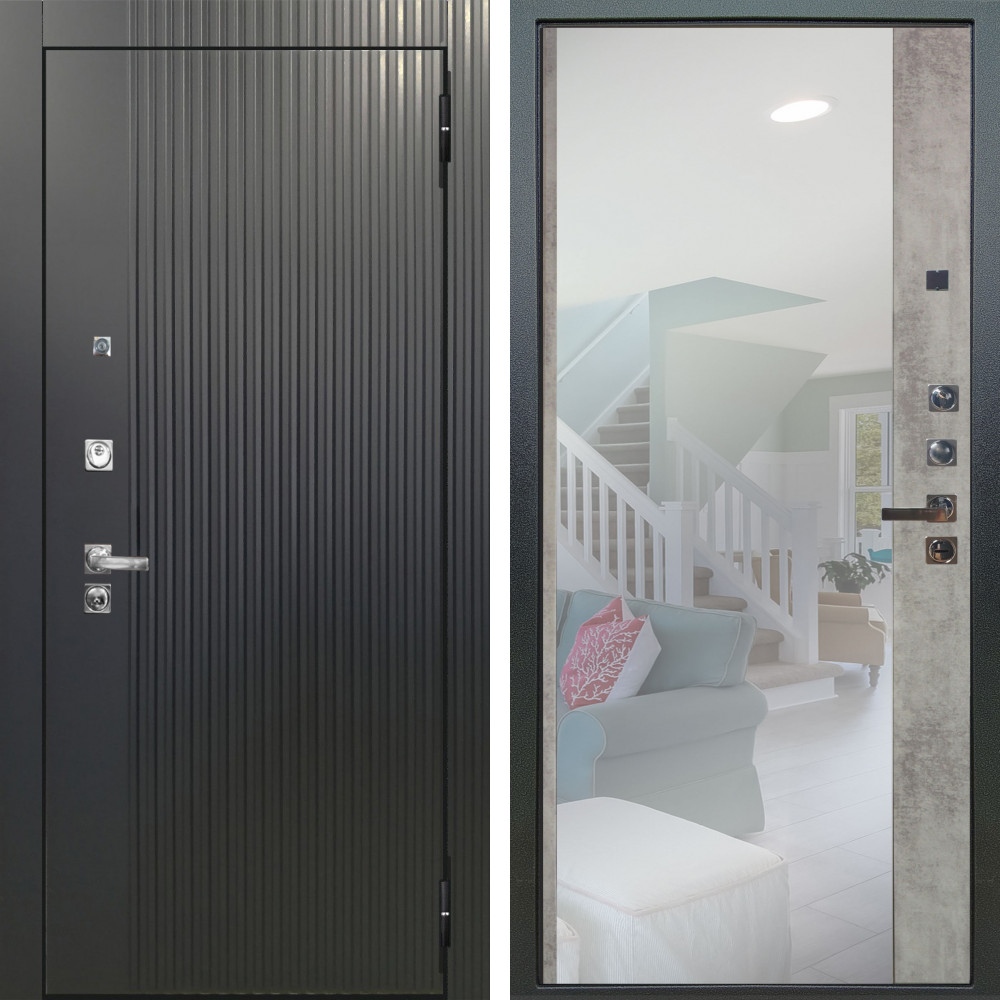 Входная дверь Termo-Door с утеплением: внешняя отделка Смарт Твист Ультра, внутренняя отделка Зеркало бетон темный.Толщина полотна 95 мм, цилиндровый замок, доставка и установка в Москве и МО, гарантия 1 год.