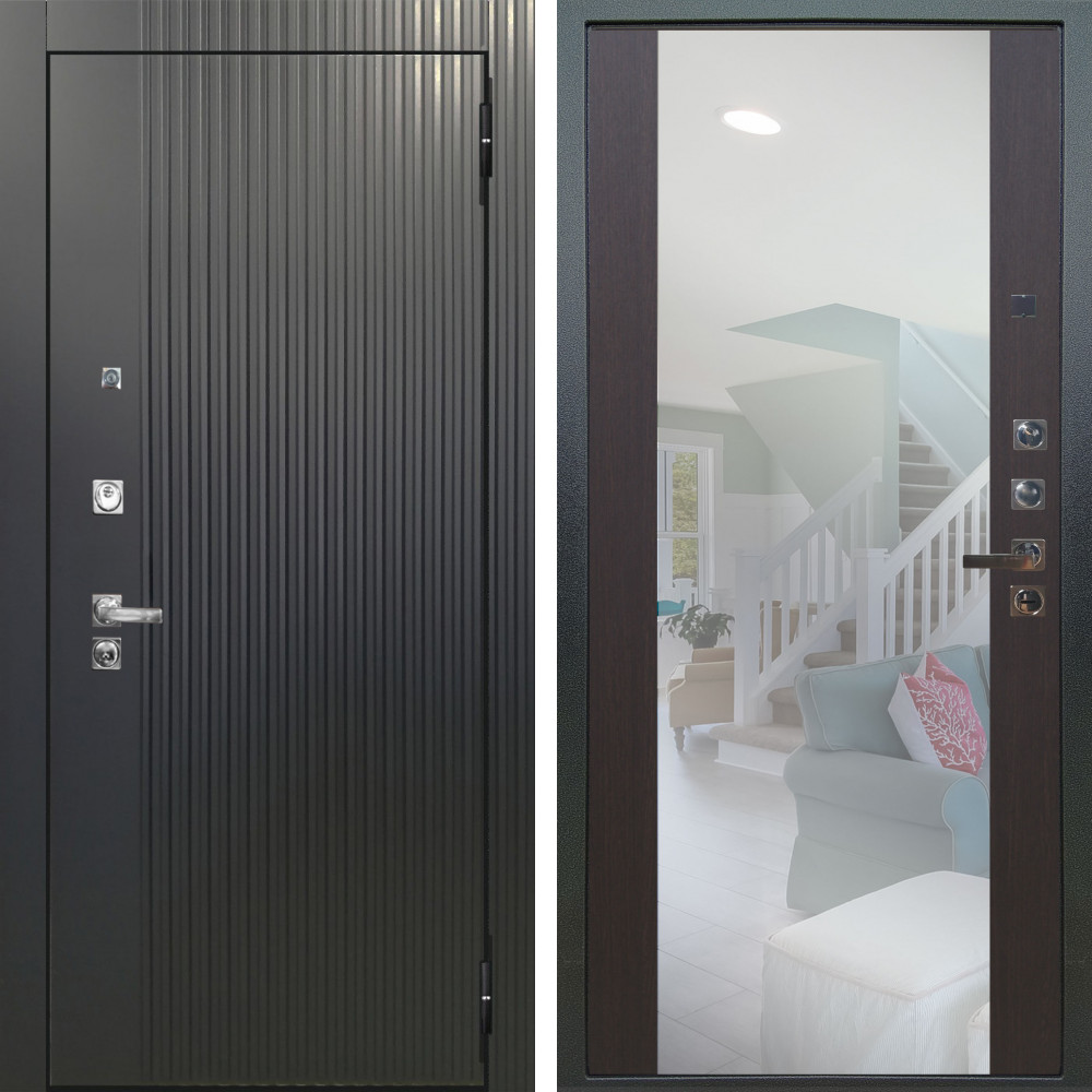 Входная дверь Termo-Door с утеплением: внешняя отделка Вертикаль Grey, внутренняя отделка Зеркало Триумф венге.Толщина полотна 100 мм., цилиндровый замок, доставка и установка в Москве и МО, гарантия 1 год.