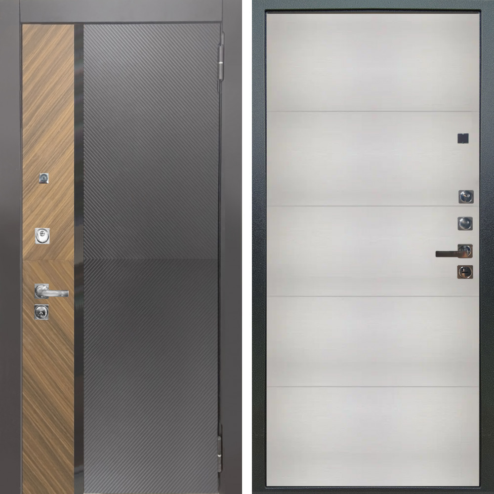 Входная дверь Termo-Door с терморазрывом и утеплением: внешняя отделка Арктика Дуб, внутренняя отделка лиственница.Толщина полотна 95 мм, цилиндровый замок, доставка и установка в Москве и МО, гарантия 1 год.