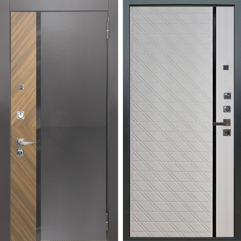 Входная дверь Шторм Графит SMART с внутренней отделкой Вертикаль Силк маус • Габаритные размеры: 2050x860 мм, 2050x960 мм • Металл 1.8мм. Черная шагрень • Внешнее покрытие: МДФ 12 мм. • Толщина полотна: 115 мм. • Толщина коробки: 120 мм. • Короб закрытого типа, утепленный • Уплотнитель: 3 контура • Два вертикальных ребра жесткости • ЭЛЕКТРОННЫЙ ЗАМОК НА ВЫБОР • Замок дополнительный: Гардиан 6001 • Врезная броненакладка • Пазы на коробке под доборы • Независимая задвижка есть • Фурнитура ЧЕРНАЯ