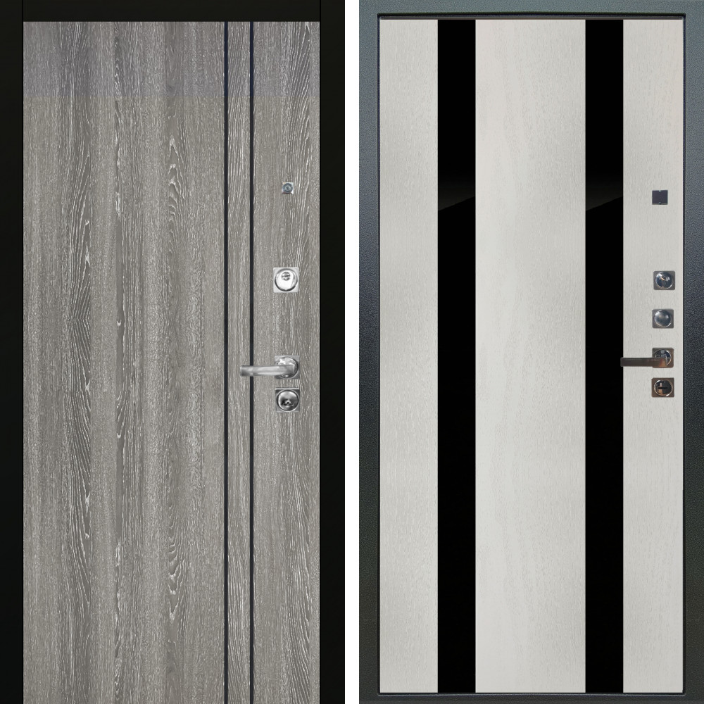 Входная дверь Аргус ЛЮКС 3К ПРО Гейджи Орех мраморный + Дуэт Белое дерево вставки Кензо