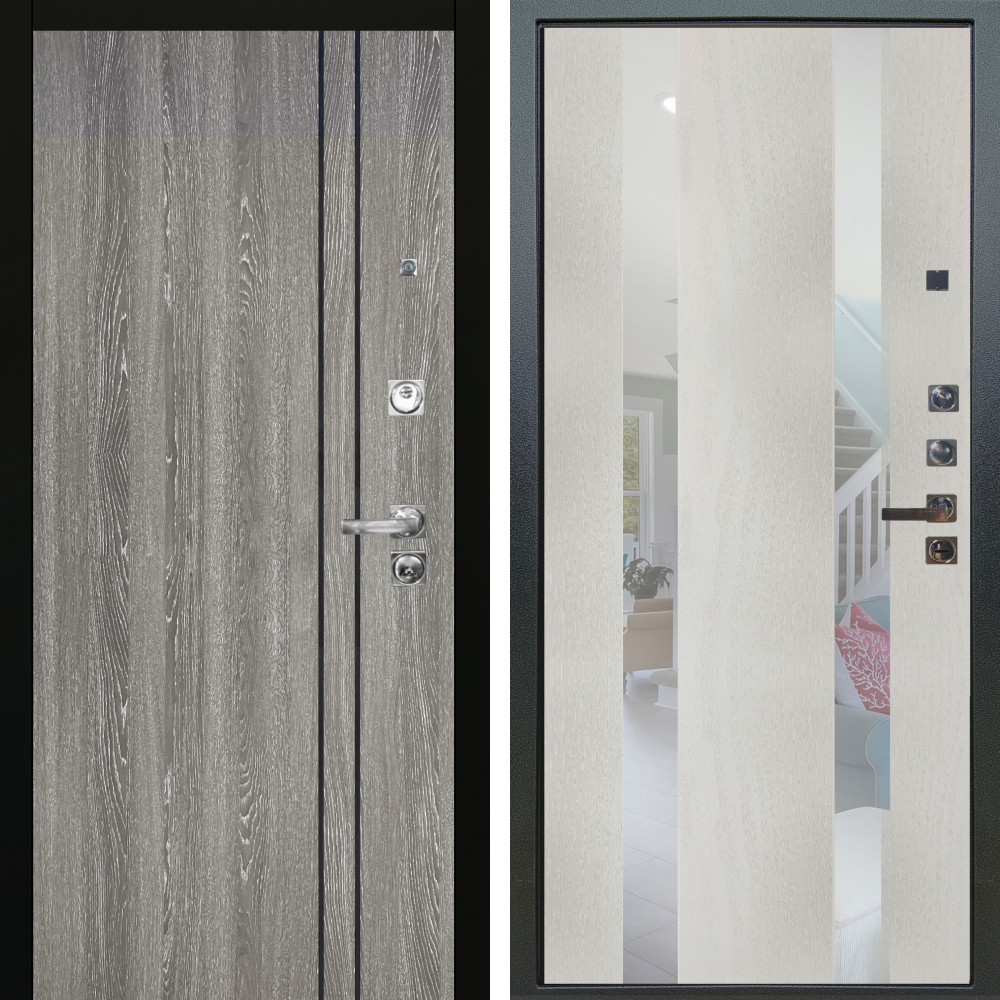 Входная дверь Termo-Door с утеплением: внешняя отделка Техно Серебро Антик, внутренняя отделка Арка белое дерево.Толщина полотна 90 мм., цилиндровый замок, доставка и установка в Москве и МО, гарантия 1 год.