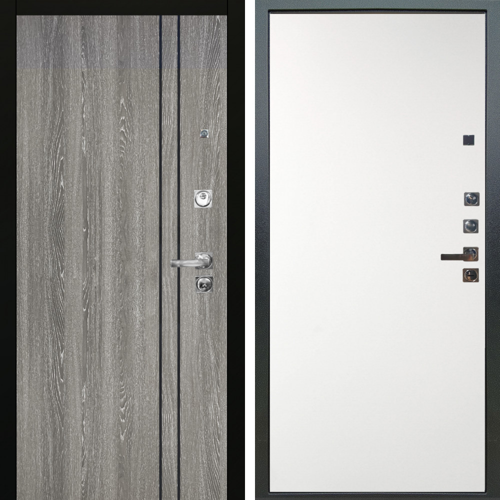 Входная дверь Шторм SMART с внутренней отделкой ФЛ-117 с полосками графит • Габаритные размеры: 2050x860 мм, 2050x960 мм • Металл 1.8мм. Черная шагрень • Внешнее покрытие: МДФ 12 мм. • Толщина полотна: 115 мм. • Толщина коробки: 120 мм. • Короб закрытого типа, утепленный • Уплотнитель: 3 контура • Два вертикальных ребра жесткости • ЭЛЕКТРОННЫЙ ЗАМОК НА ВЫБОР • Замок дополнительный: Гардиан 6001 • Врезная броненакладка • Пазы на коробке под доборы • Независимая задвижка есть • Фурнитура ЧЕРНАЯ