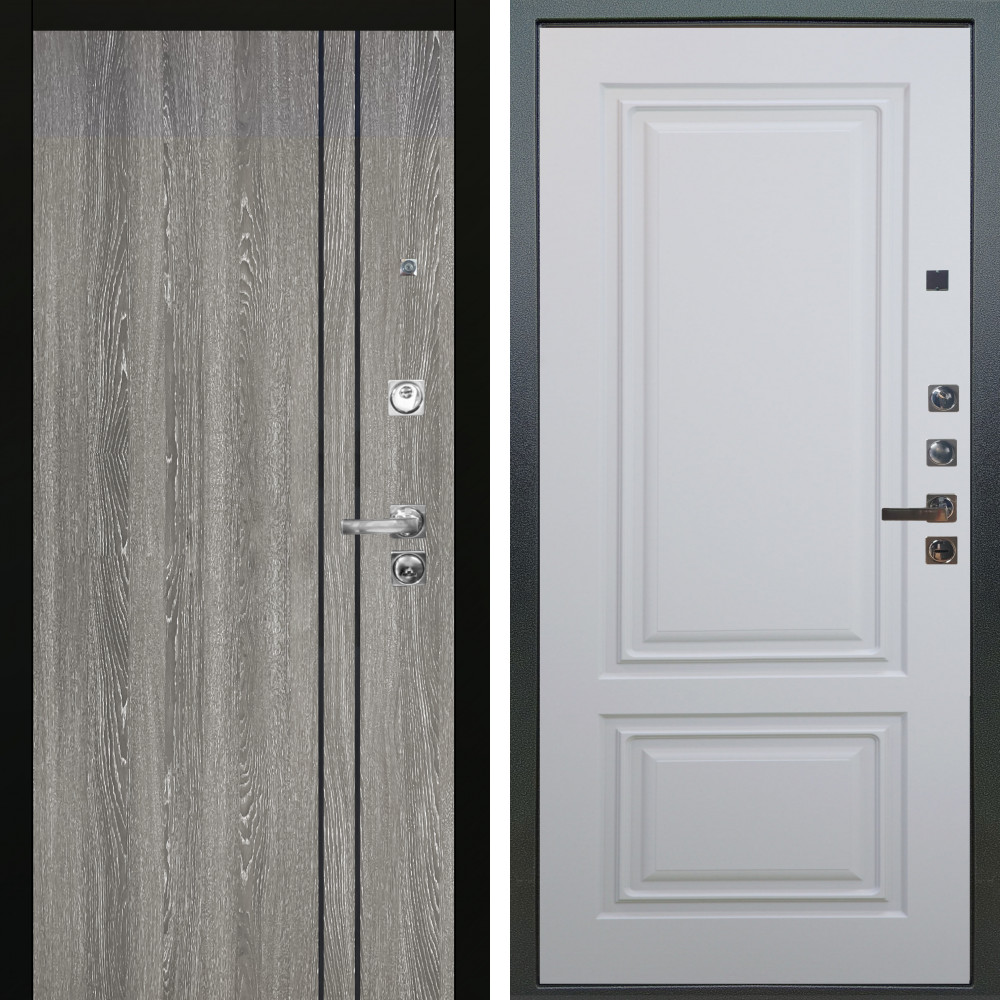 Входная дверь Termo-Door с утеплением: внешняя отделка Смарт Урбан Black, внутренняя отделка Гранд Белый софт.Толщина полотна 95 мм, цилиндровый замок, доставка и установка в Москве и МО, гарантия 1 год.