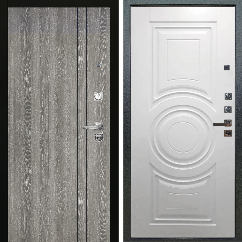Входная дверь Termo-Door с утеплением: внешняя отделка Авангард Бетон, внутренняя отделка Горизонт Grey софт.Толщина полотна 100 мм., цилиндровый замок, доставка и установка в Москве и МО, гарантия 1 год.