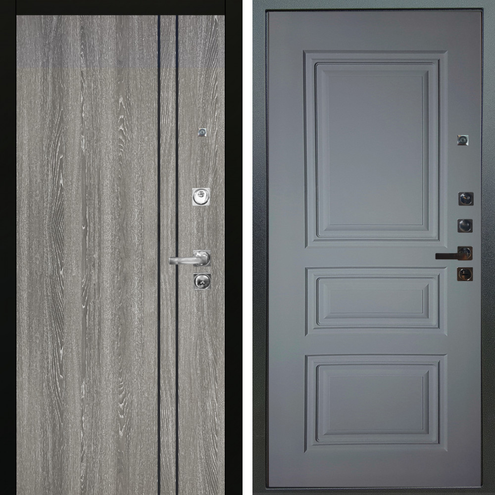 Входная дверь Termo-Door с утеплением: внешняя отделка Квантум Грей, внутренняя отделка Классика лиственница.Толщина полотна 100 мм., цилиндровый замок, доставка и установка в Москве и МО, гарантия 1 год.