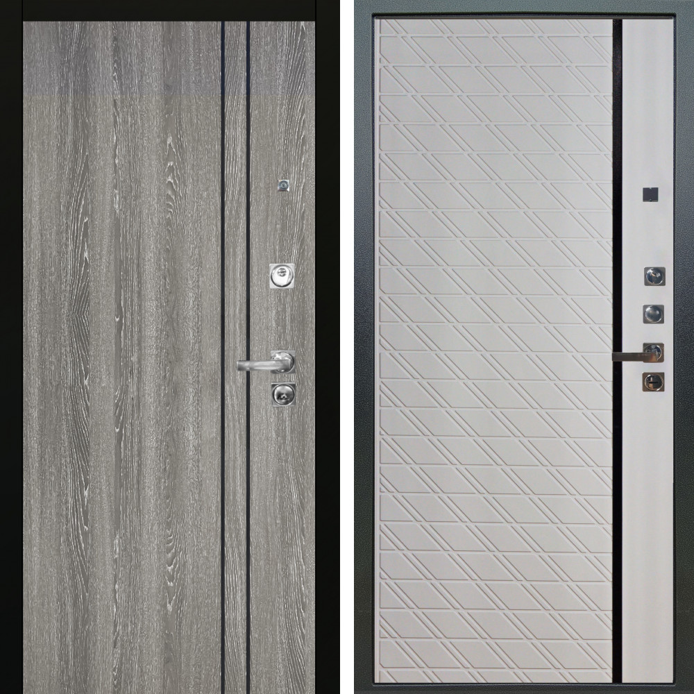 Полотно - два листа металла, Замковая зона усилена металлическим бронепакетом. Ответная часть замковой зоны усилена стальным швеллером,что сводит к минимуму попытки вскрытия двери методом отжима. Бронепластины на коробе в зоне входа ригелей замка. 2 специальных армированных прута внутри конструкции надёжно защитят дверь от вскрытия килечным ножом.