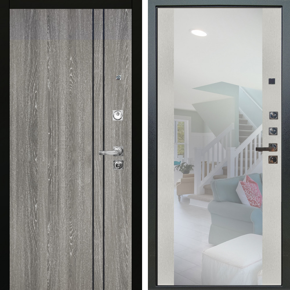 Входная дверь Termo-Door с утеплением: внешняя отделка Квантум Грей, внутренняя отделка Классика белое дерево.Толщина полотна 100 мм., цилиндровый замок, доставка и установка в Москве и МО, гарантия 1 год.
