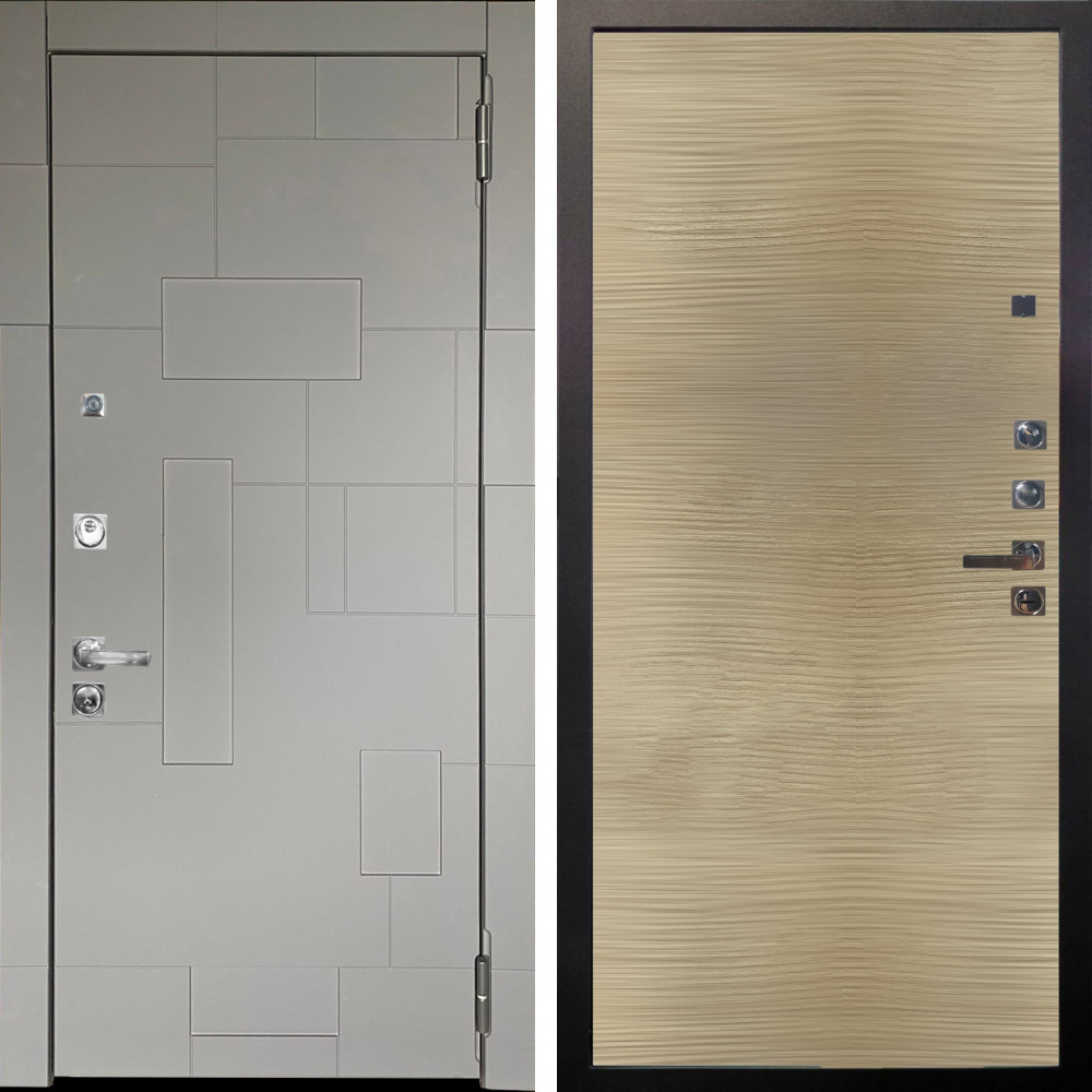 Входная дверь Termo-Door с утеплением: внешняя отделка Смарт Геометрия, внутренняя отделка Престиж белое дерево.Толщина полотна 95 мм, цилиндровый замок, доставка и установка в Москве и МО, гарантия 1 год.