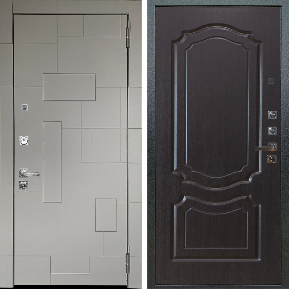 Входная дверь Termo-Door с утеплением: внешняя отделка Авангард Бетон, внутренняя отделка Без серии Орех стандарт.Толщина полотна 100 мм., цилиндровый замок, доставка и установка в Москве и МО, гарантия 1 год.