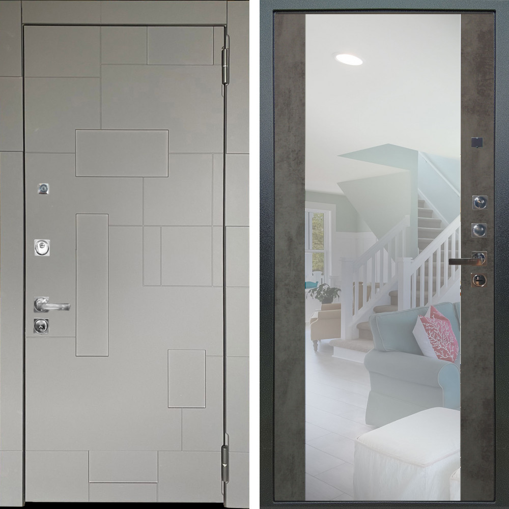Входная дверь Termo-Door с терморазрывом и утеплением: внешняя отделка Премиум Веста Дуб, внутренняя отделка Зеркало Фацет Черный кварц+тонировка серая.Толщина полотна 95 мм, цилиндровый замок, доставка и установка в Москве и МО, гарантия 1 год.