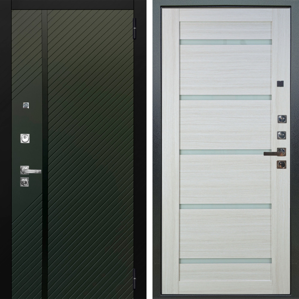 Входная дверь Termo-Door с терморазрывом и утеплением: внешняя отделка Премиум Орегон Грин, внутренняя отделка Flat Белый софт.Толщина полотна 95 мм, цилиндровый замок, доставка и установка в Москве и МО, гарантия 1 год.