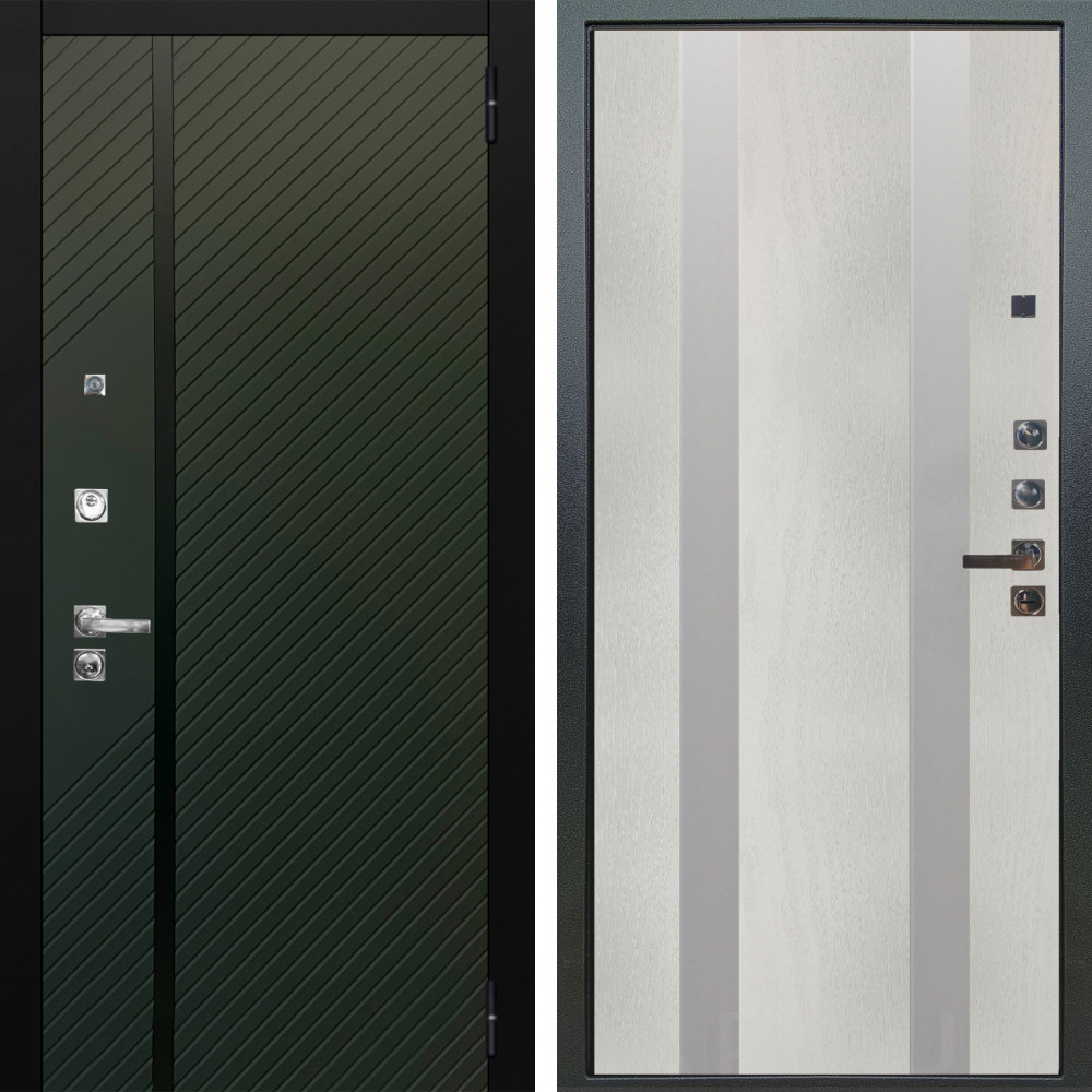 Входная дверь Аргус ЛЮКС 3К ПРО Ланцет Олива софт + Дуэт Белое дерево вставки Изабель