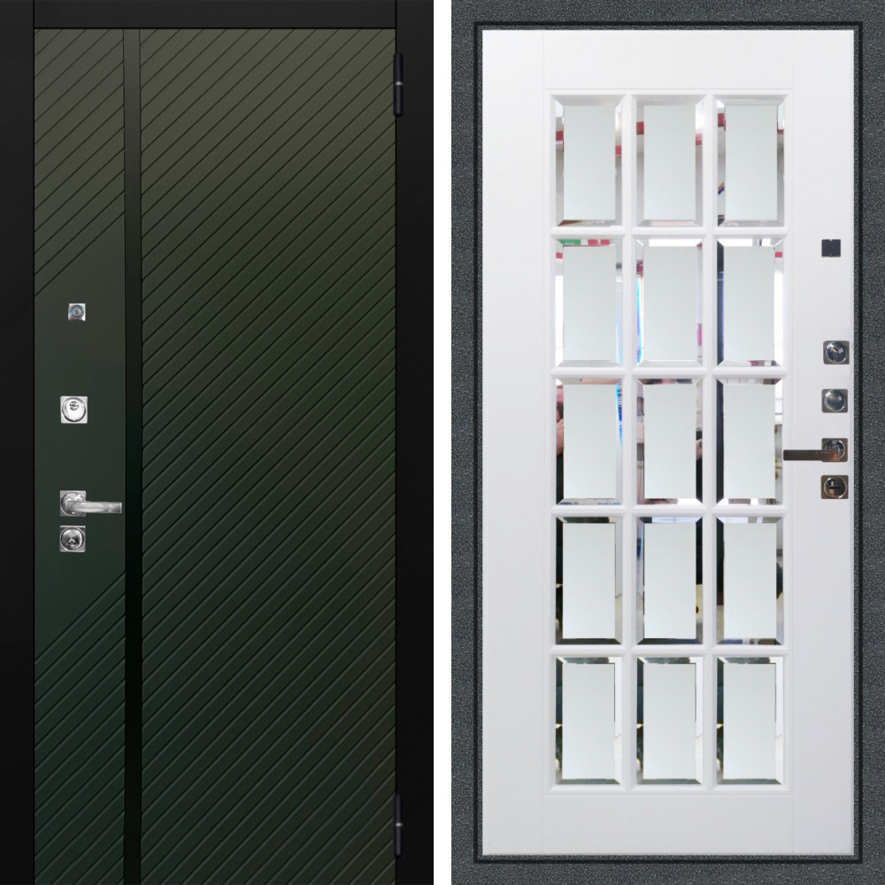 Входная дверь Аргус ЛЮКС 3К ПРО Ланцет Олива софт + Мэрелин Софт милк с фацетом и пескоструем