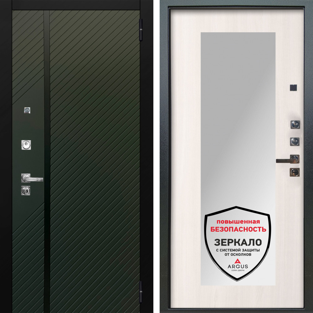 Входная дверь Termo-Door с утеплением: внешняя отделка Квантум velutto verde, внутренняя отделка Зеркало Фацет Grey софт.Толщина полотна 100 мм., цилиндровый замок, доставка и установка в Москве и МО, гарантия 1 год.