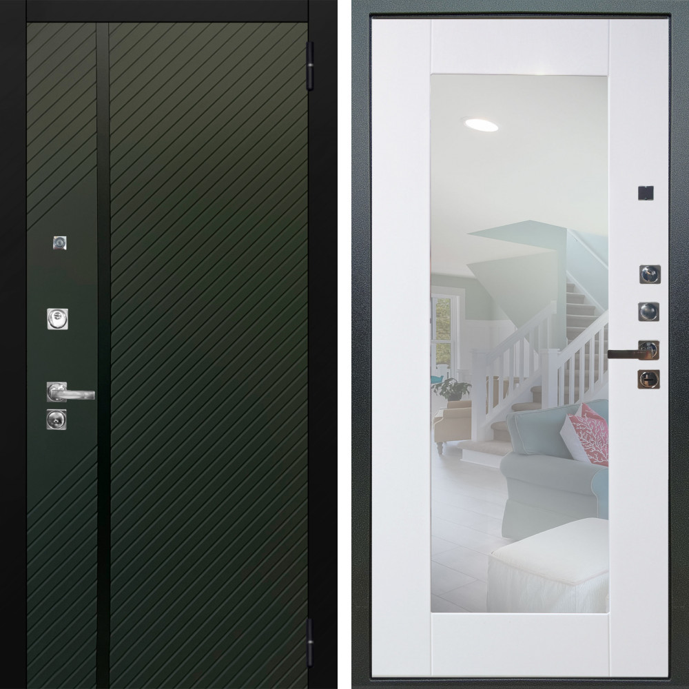 Входная дверь Termo-Door Смарт Орегон Green - Зеркало Фацет Белый софт