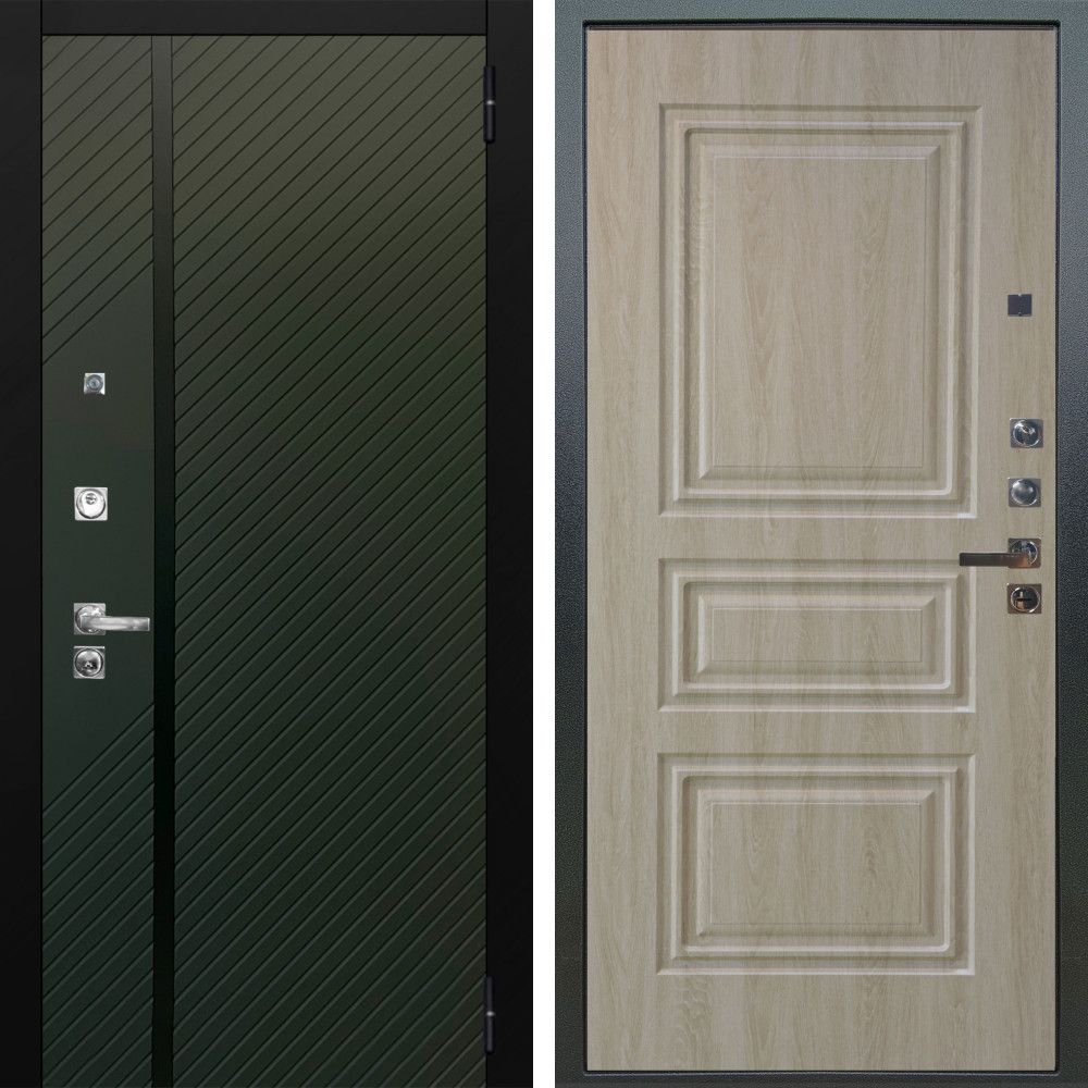 Входная дверь Аргус ЛЮКС 3К ПРО Ланцет Олива софт + Скиф Дуб филадельфия крем