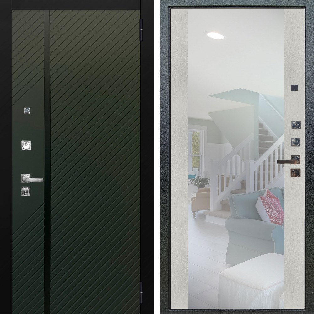 Входная дверь Аргус ЛЮКС 3К ПРО Ланцет Олива софт + Вояж Белое дерево