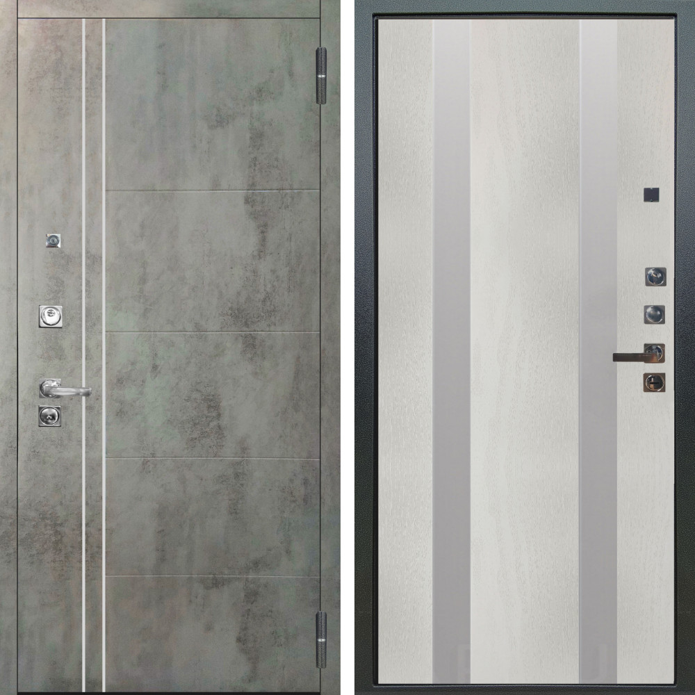Входная дверь Аргус ЛЮКС 3К ПРО Лофт Темный бетон + Дуэт Белое дерево вставки Изабель
