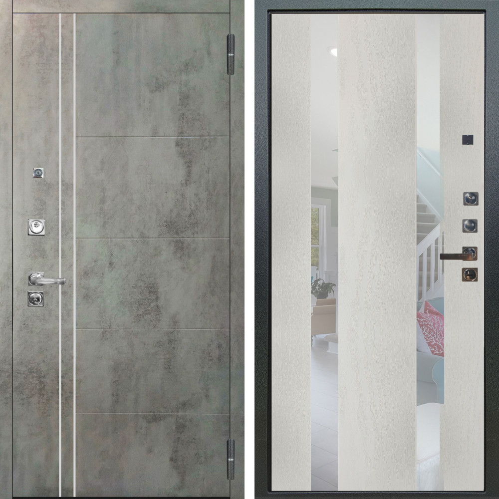 Входная дверь Аргус ЛЮКС 3К ПРО Лофт Темный бетон + Дуэт Белое дерево вставки Николь