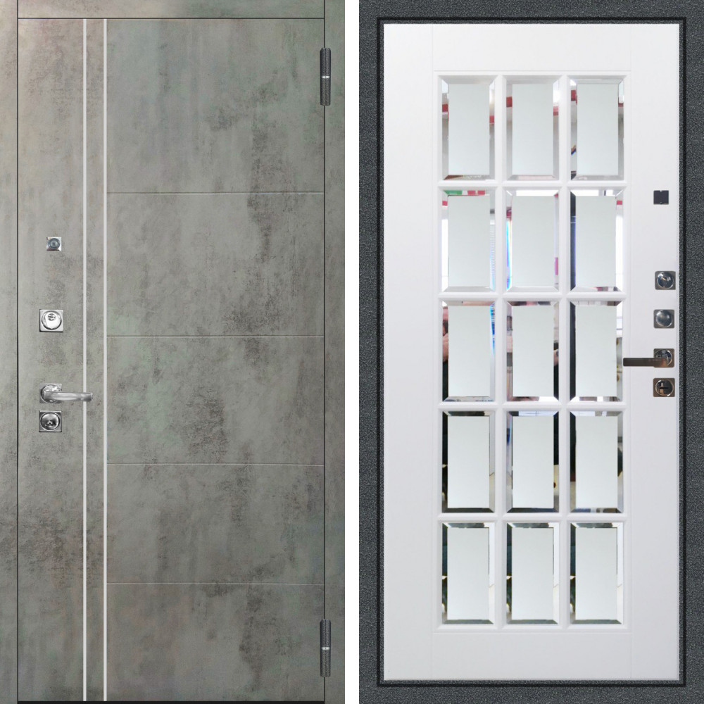 Входная дверь Аргус ЛЮКС 3К ПРО Лофт Темный бетон + Мэрелин Софт милк с фацетом и пескоструем