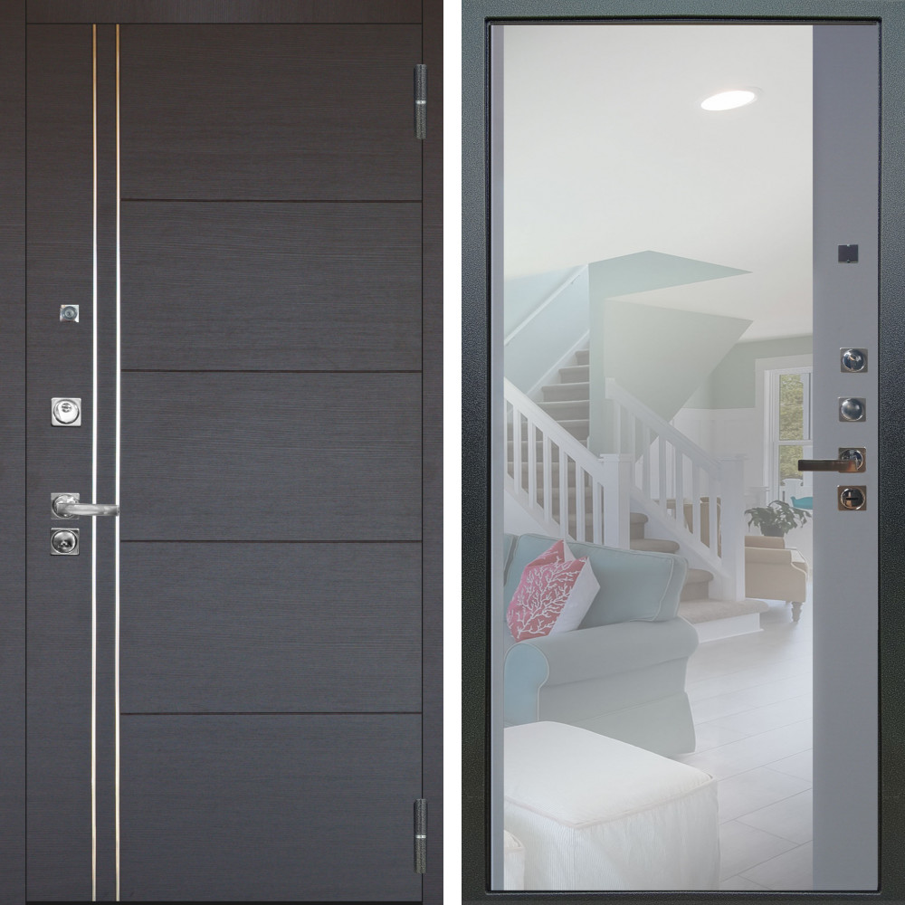 Входная дверь Termo-Door с утеплением: внешняя отделка Геометрия Дуб, внутренняя отделка Зеркало Триумф лиственница.Толщина полотна 100 мм., цилиндровый замок, доставка и установка в Москве и МО, гарантия 1 год.