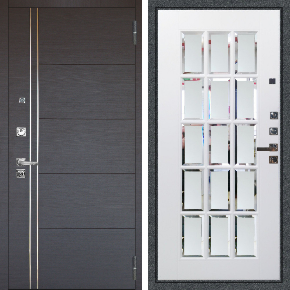 Входная дверь Аргус ЛЮКС 3К ПРО Лофт Венге горизонт + Мэрелин Софт милк с фацетом и пескоструем
