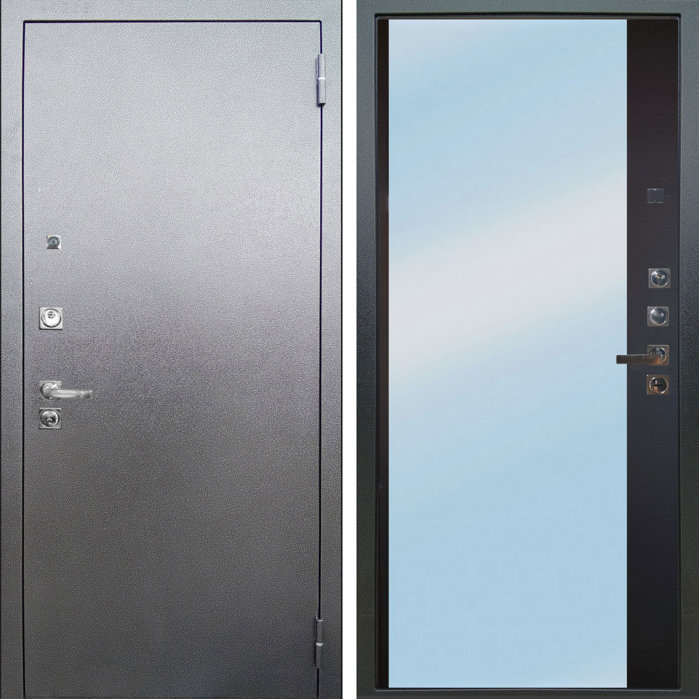 Входная дверь Шторм Графит с внутренней отделкой Зеркало СБ-16 сандал белый • Габаритные размеры: 2050x860 мм, 2050x960 мм • Металл 1.5мм. • Внешнее покрытие: МДФ 12 мм. • Цвет покрытия: Графит. • Толщина полотна: 100 мм. • Толщина коробки: 105 мм. • Окрас короба:Черная шагрень. • Короб закрытого типа, утепленный. • Уплотнитель: 3 контура. • Два вертикальных ребра жесткости. • Замок основной: Guardian 3211 (цилиндровый). • Замок дополнительный: Guardian 300 • Врезная броненакладка. • Независимая задвижка есть. • Фурнитура Черная.