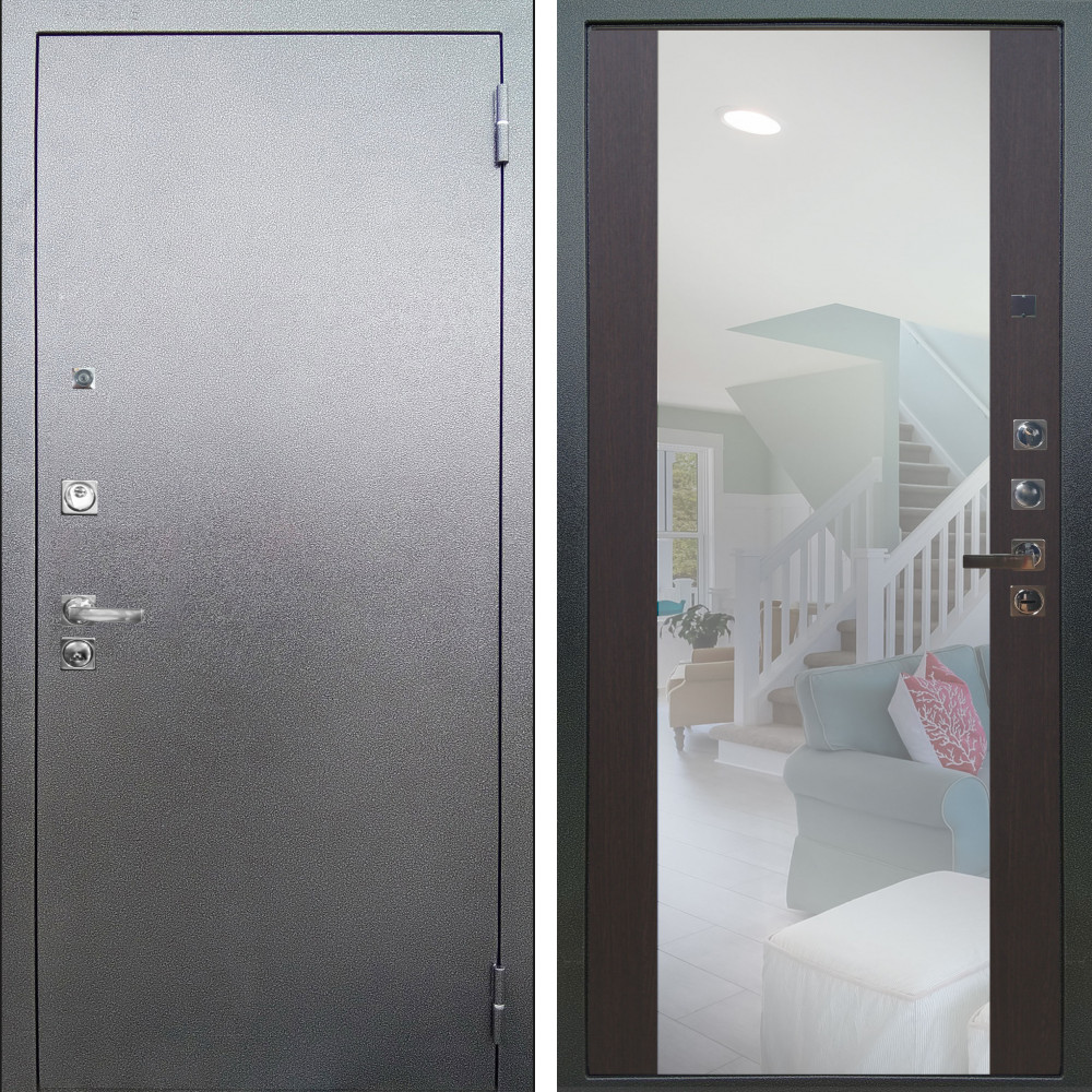 Входная дверь Termo-Door с утеплением: внешняя отделка White Line, внутренняя отделка Зеркало Фацет Grey софт.Толщина полотна 100 мм., цилиндровый замок, доставка и установка в Москве и МО, гарантия 1 год.