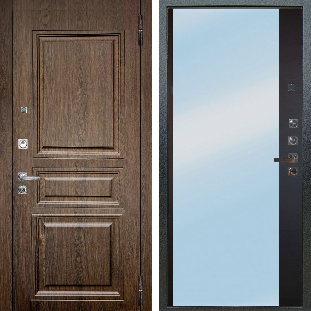 Полотно - два листа металла, Замковая зона усилена металлическим бронепакетом. Ответная часть замковой зоны усилена стальным швеллером,что сводит к минимуму попытки вскрытия двери методом отжима. Бронепластины на коробе в зоне входа ригелей замка. 2 специальных армированных прута внутри конструкции надёжно защитят дверь от вскрытия килечным ножом.